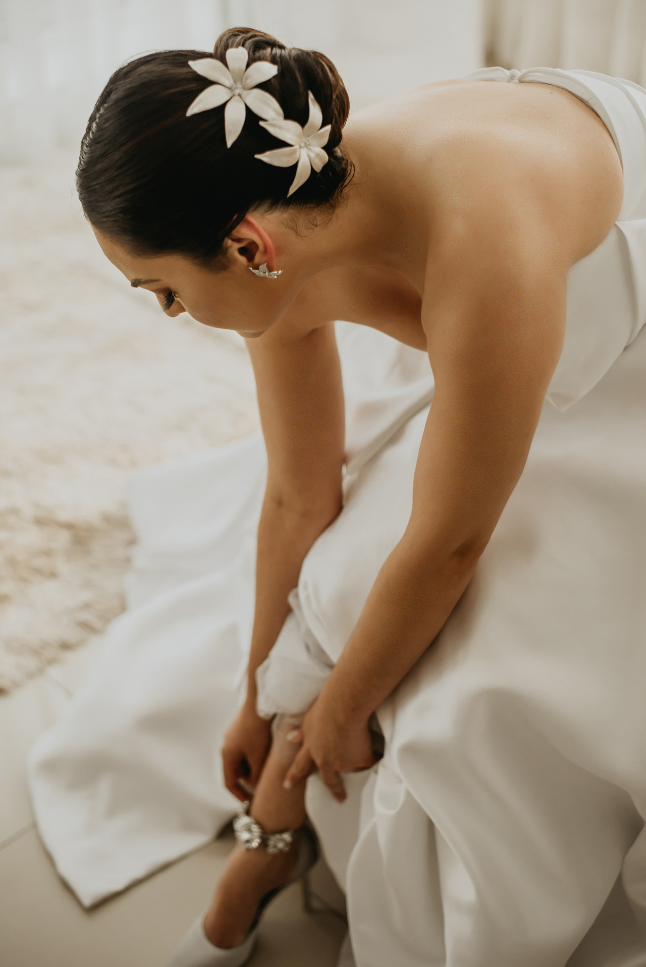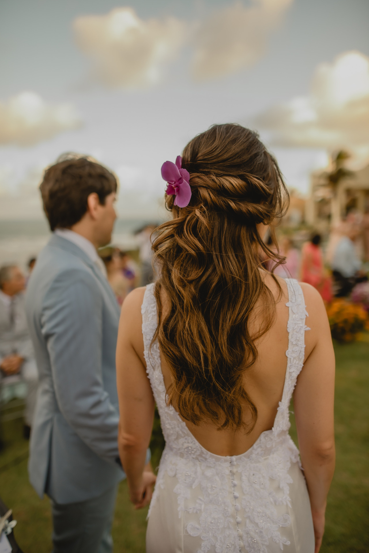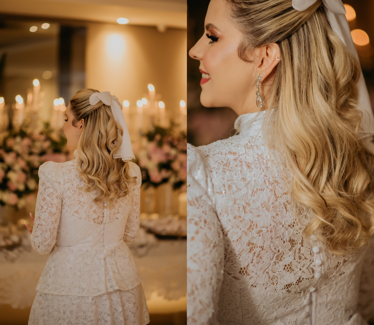 Seja o laço, uma delicada flor natural, uma tiara brilhante ou um véu esvoaçante, o acessório de cabelo (ou grinalda) complementa o visual da noiva de maneira memorável. Além de embelezar, ele também pode ter significados simbólicos profundos, como representar tradições familiares ou culturais.